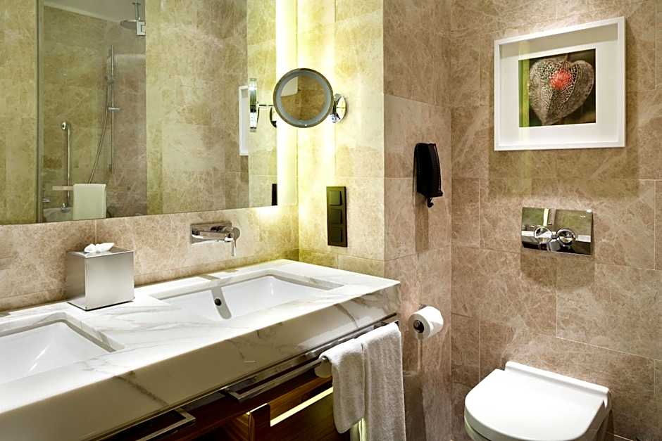 The spacious suite features a living room with informal seating area and a 42-inch TV, as well as a Nespresso® coffee machine.